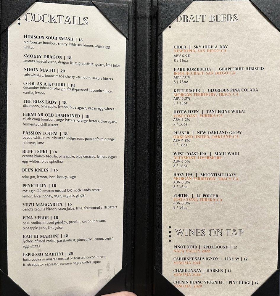 Welcome to Fermentation Lab, a seafood haven located in the heart of Japantown, San Francisco. This swanky cocktail bar offers a diverse selection of fusion-inspired dishes and hand-crafted cocktails in a cozy and trendy ambiance reminiscent of a Prohibition-era speakeasy.