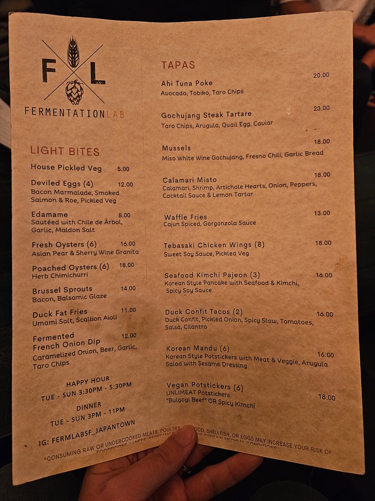 If you're seeking a sophisticated yet laid-back dining experience with impeccable service and a creative menu, Fermentation Lab is the perfect spot to explore the flavors of the sea.